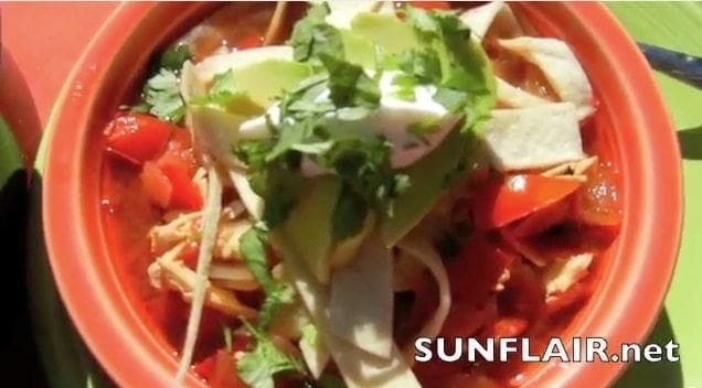 This zesty chicken tortilla soup will be the talk of the dinner party. Great idea for SUNFLAIR Solar Oven chicken leftovers.